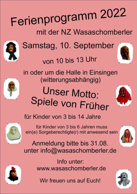 Anmeldung oder Rückfragen an die Narrenzunft "Wasaschomberler" Einsingen e.V. 2003 "VzPdhB" bis zum 31.08.2022 per Mail an info@wasaschomberler.de.