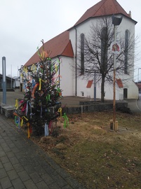 Der Narrenbaum wurde bereits im Vorfeld vereinsintern bei der Kirche gestellt – Danke!